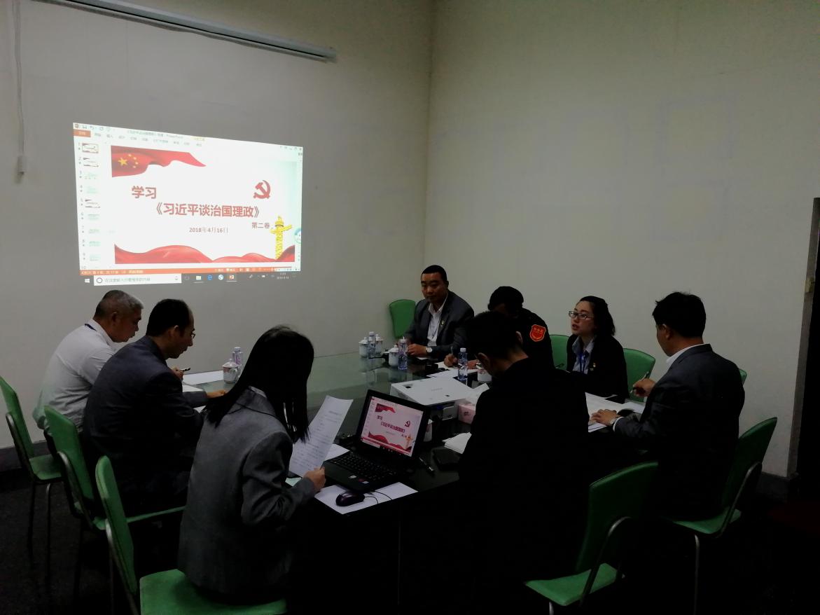2018年4月16日上午,中山影视城党支部组织全体党员在公司会议室举办专题学习党课,集中学习了《习近平谈治国理政》第二卷。