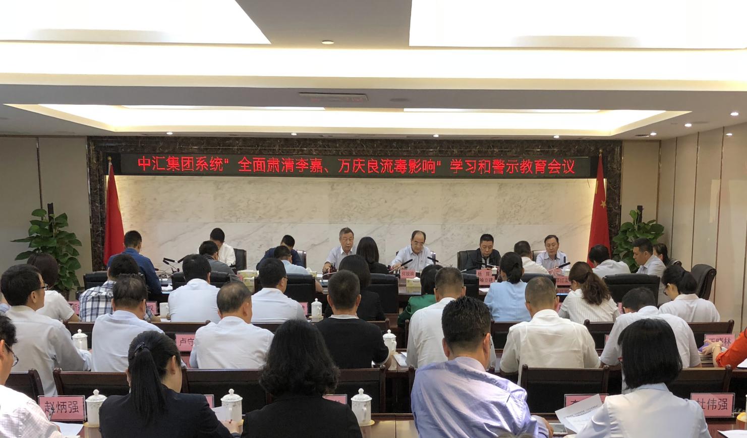 2018年4月25日下午,中汇集团党委在集团8楼会议厅召开全面彻底肃清李嘉、万庆良流毒影响警示教育会议,传达贯彻了市纪委、市委组织部、市国资委党委关于坚决全面彻底肃清李嘉、万庆良流毒影响相关会议精神。会议由中汇集团党委副书记、董事、总经理何锐驹主持,中汇集团党政领导班子成员、各级党组织书记和下属企业董事长、总经理,以及集团本部全体党员和中层干部参加了会议。