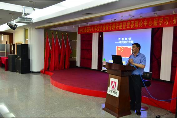 在授课中,刘明教授讲述了中国共产党从建党之初,不断克服内外部困难,历经艰难探索,找到正确革命道路,进行艰苦卓绝斗争,并最终带领中国老百姓打破三座大山压迫,实现民族独立和人民自由,建立新中国的光辉历史,让中汇集团党员干部受到了一次深刻的思想教育。会后,与会人员纷纷表示,通过重温党史,使大家更加深刻地认识到革命先烈们为我们今天的幸福生活所做出的巨大牺牲和无私奉献,更加认识到中国共产党的伟大和光荣,也进一步增强了爱党、忧党、为党、护党的精神情怀。