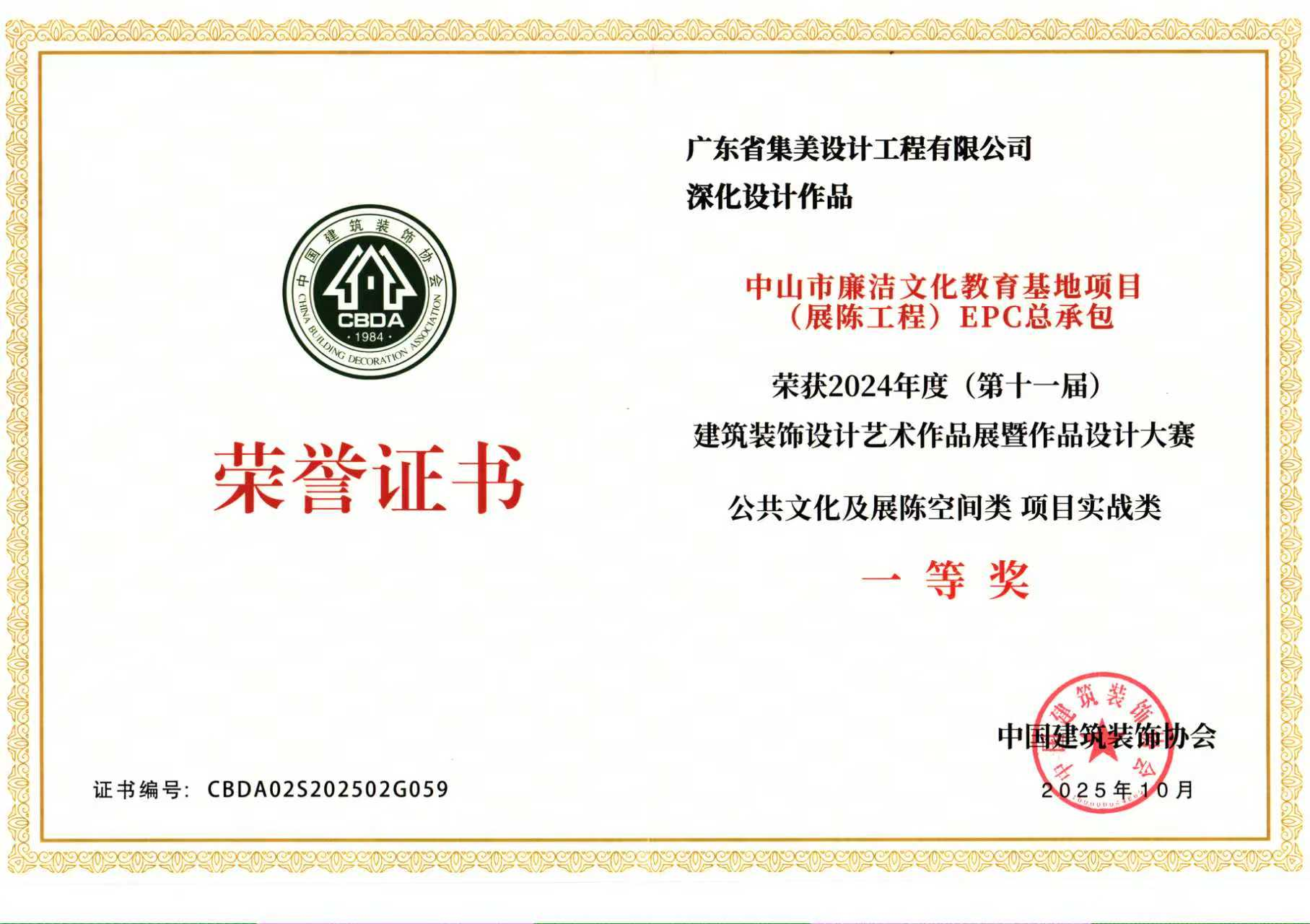 喜报!尚园公共文化中心摘得国家级设计桂冠近日,由中山市纪委监委统筹推进、市属国企中山投控旗下文旅投公司运营的尚园公共文化中心(中山市廉洁文化教育基地,简称尚园)传来捷报。该展陈工程EPC总承包项目由广东省集美设计工程有限公司深化设计,在第十一届中国建筑装饰设计艺术作品展暨设计大赛中,荣获“公共文化及展览空间类”一等奖。尚园项目凭借在空间叙事、文化表达与功能创新上的卓越表现,从全国众多精品力作中脱颖而出。此次获奖不仅是设计领域的权威认可,更印证了其“空间活化+廉洁文化+民生服务”融合发展模式的成功实...