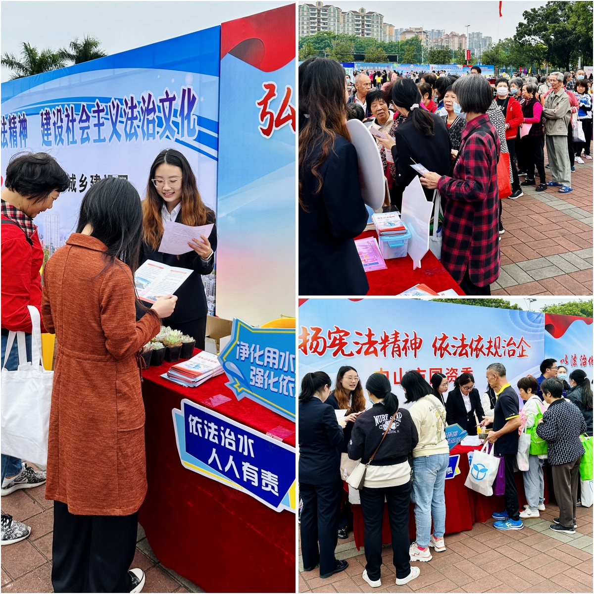 本次活动,中山投控不仅关注宪法普及宣传,还结合主责主业,将主题聚焦“污水治理”。活动现场,投控普法队伍摆展台、支展架,通过“发资料、讲危害、答疑问”等方式,围绕防污治污、水环境环保等问题进行普法。内容丰富、资料详实,既有法律条款,又有案例分析,一时间宣传台附近人来人往,热闹非凡。