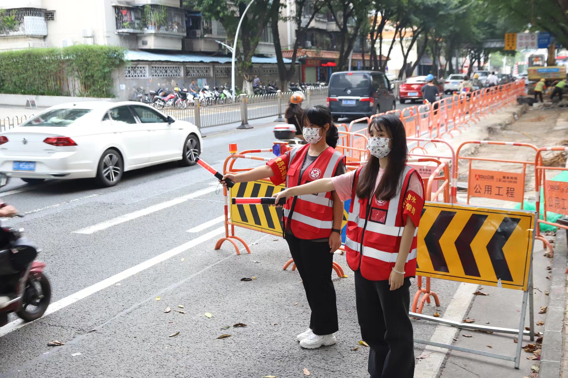 随着治水工程作业面的全面铺开,为最大限度减少对群众的影响,中山公用创新性将志愿服务工作引入中山治水工作体系,组建治水交通协管队,坚持“党员带头、青年参与、群众支持、网中分格、职责分明”,以新思路、新角度、新模式全面赋能治水攻坚战。