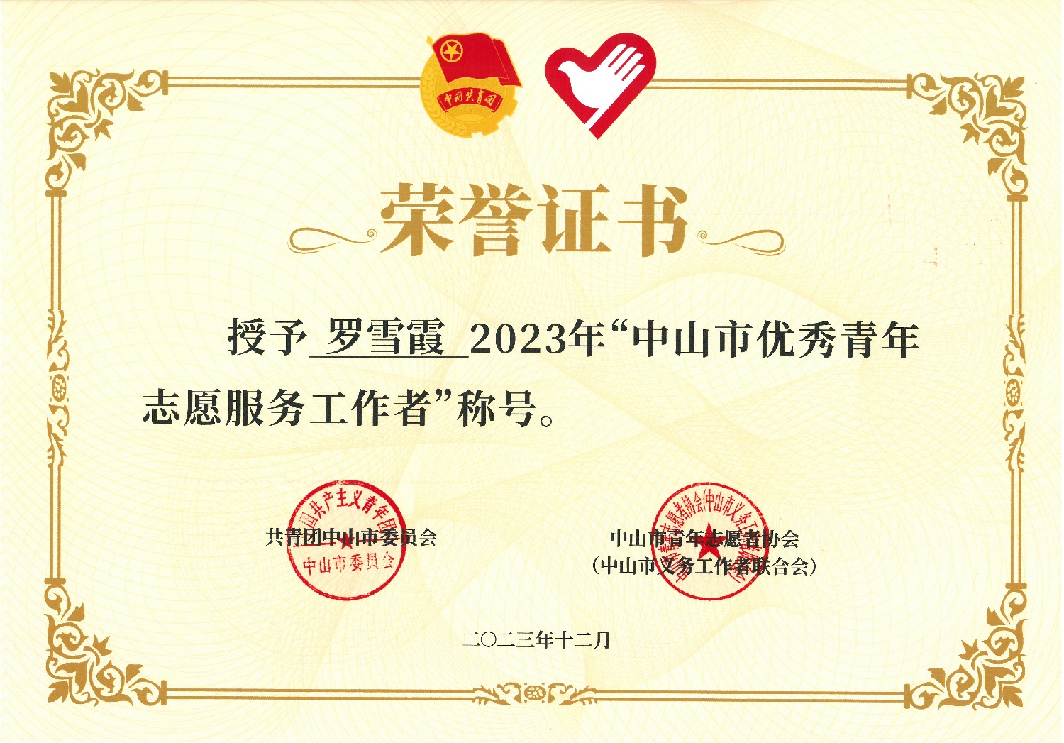 中山温泉职工罗雪霞同志获评2023年“中山市优秀青年志愿服务工作者”。罗雪霞于2018年8月入职中山温泉,从事文职岗位,加入志愿服务队以来,累计参与各项志愿活动280余次,用实际行动服务更多有需要的人,创造更多志愿价值。