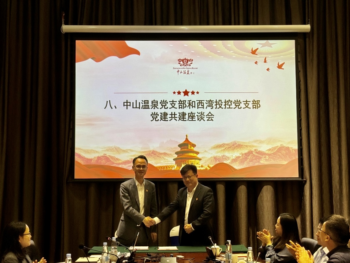 中山温泉党支部与西湾投控党支部联合开展党建共建座谈会,互相交流发展历程、经营情况、产业规划和投资方向,并签订党组织共建与业务融合发展工作机制。