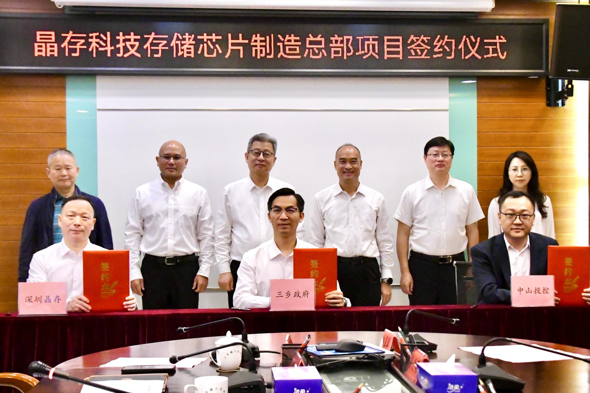 4月3日,深圳市晶存科技有限公司(以下简称“晶存科技”)、三乡镇人民政府、中山市投资控股集团有限公司(以下简称“中山投控”)在三乡镇政府举行晶存科技存储芯片制造总部项目签约仪式。