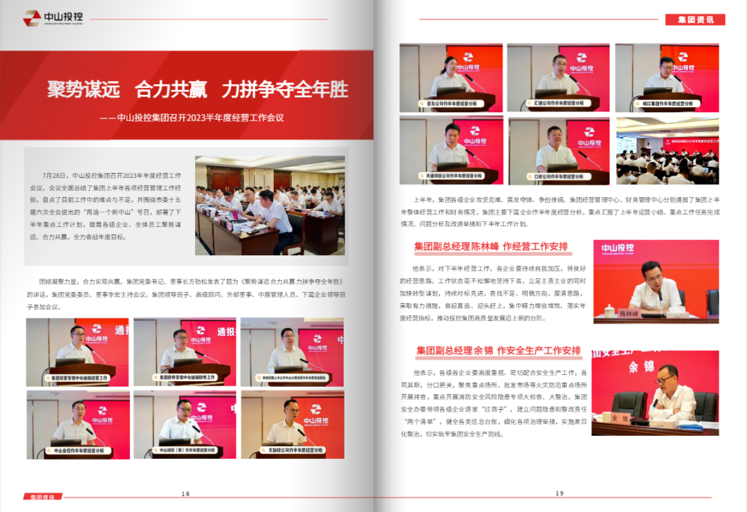 中山投控盘点年中“成绩单”、全面吹响“百千万工程”号角、走进标杆企业研学取经、迎来实习合作营圆满结营、抗台行动中尽显国企担当、深度参与美丽乡村建设……本期内刊的“集团资讯”栏目里,我们欣喜地看到集团持续推动战略走深走实,改革措施见行见效,上下聚势谋远、合力共赢,在上半年强劲开局的基础上,在市委“再造一个新中山”的召唤下,迈出高质量发展的坚实步伐。
