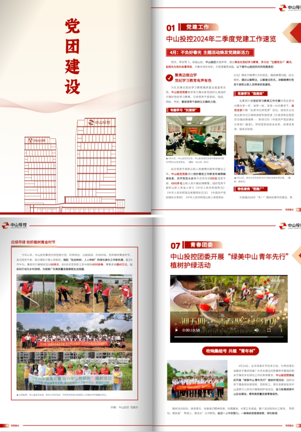 放眼“党团建设”栏目,聚焦边做边学,党纪学习教育有声有色;依托共建共享,主题党日活动多姿多彩;立足主责主业,为民办实事走心走实;落实植绿护绿,绿美中山生态建设如火如荼……从草长莺飞的四月到骄阳似火的六月,在中山投控党委的牵引带领下,各公司党组织和党员敢接烫手山芋、敢啃硬骨头、敢趟泥水,不断为集团公司高质量发展强根固本。