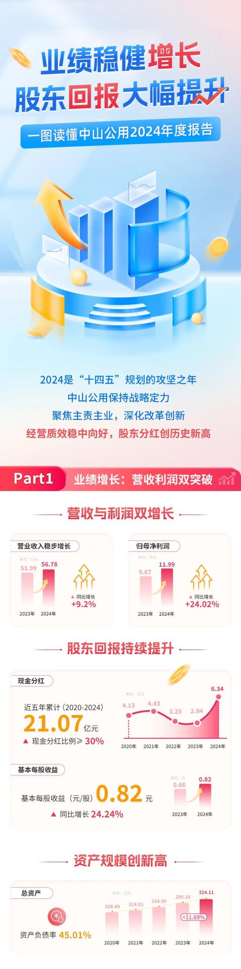 中山公用 丨 一图读懂中山公用2024年度报告:业绩稳健增长,股东回报大幅提升