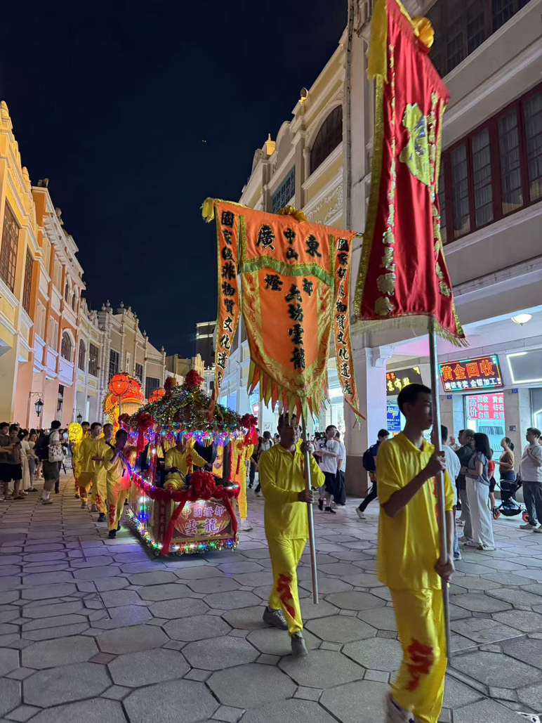 随着夜幕降临,石岐街道华灯初上,星河璀璨,一河两岸游人如织。活动现场,古镇六坊云龙、石岐醒狮、申明亭鹤舞、西区醉龙等国家、省、市级非遗项目展演巡游队伍威风凛凛、灵动多变,每一个动作都充满了力量与激情,瞬间吸引众人目光。巡游队伍所到之处,道路两侧观者如云、熙熙攘攘、人声鼎沸,惊讶声叫好声不绝于耳,让市民游客皆沉浸式地感受非遗之魅力,领略传统文化之精髓。