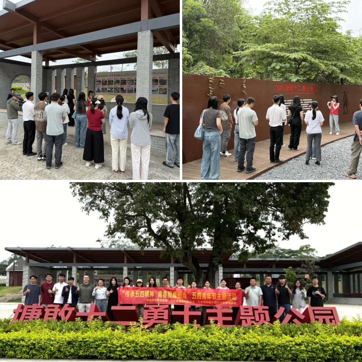 4月30日上午,为进一步团结带领团员青年传承红色基因,中山投控团委组织青年职工走进三乡镇塘敢村十二勇士主题公园,结合党的二十大精神开展现场微党课。青年们静静驻足在抗战遗址前,聆听讲解员讲述“塘敢十二勇士”以寡敌众、血战到底的英雄事迹。青年们表示,要以勇士为榜样,传承红色精神,在今后的工作中勇挑重担,为企业发展添砖加瓦,贡献自己的青春力量。