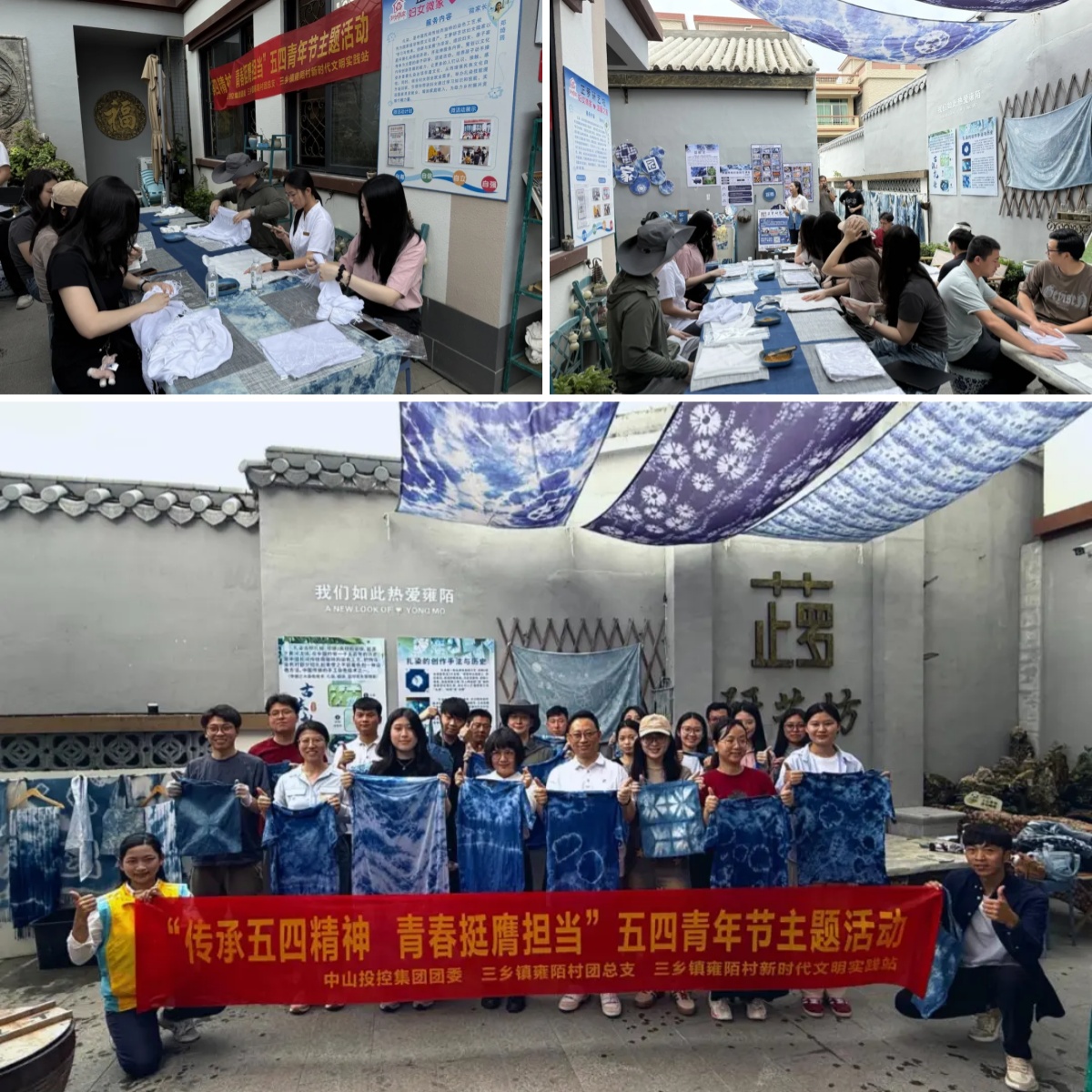 在三乡镇雍陌村芷萝研艺坊内,蓝白相间的扎染作品渐次呈现。为深入贯彻“百千万工程”部署,中山投控团委联合结对村雍陌村团总支共同举办“传承五四精神 青春挺膺担当”五四青年节主题活动。组织青年职工、村干部深入挖掘三乡镇雍陌村的优秀传统文化元素,走进雍陌村“百千万人才”赋能“百千万工程”示范项目芷萝研艺坊,亲身体验扎染手工艺的独特魅力。投控青年与返乡创业青年面对面交流,深入了解“百千万工程”青年人才扎根乡村、创新传承非遗文化的实践历程,为乡土振兴注入青春智慧。