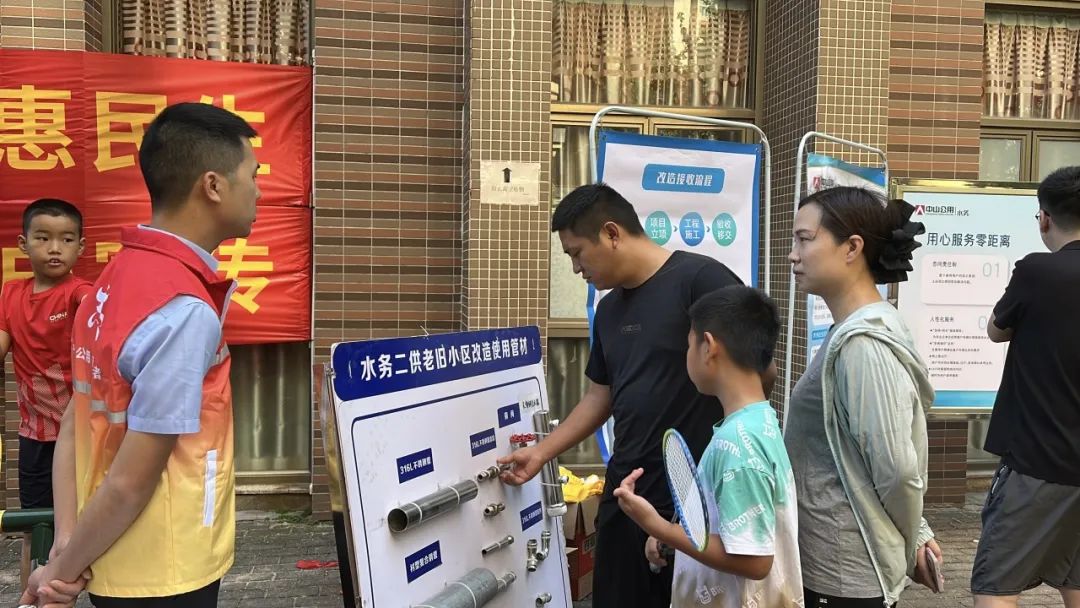 中山公用水务公司将雍泉山庄二次供水改造列为“百千万工程”重点任务,充分发挥党建引领作用,统筹多方力量,形成攻坚合力。服务团队深入小区开展政策宣讲,累计派发宣传资料1000余份,耐心解答居民疑问,确保改造工作得到广泛支持。同时,不定期进入用户家中开展用水设施检修,解决用户水压偏低、用水设施漏水等问题,切实以“增值服务”提升幸福感。